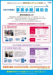 令和元年度 事業承継補助金の公募が始まります
