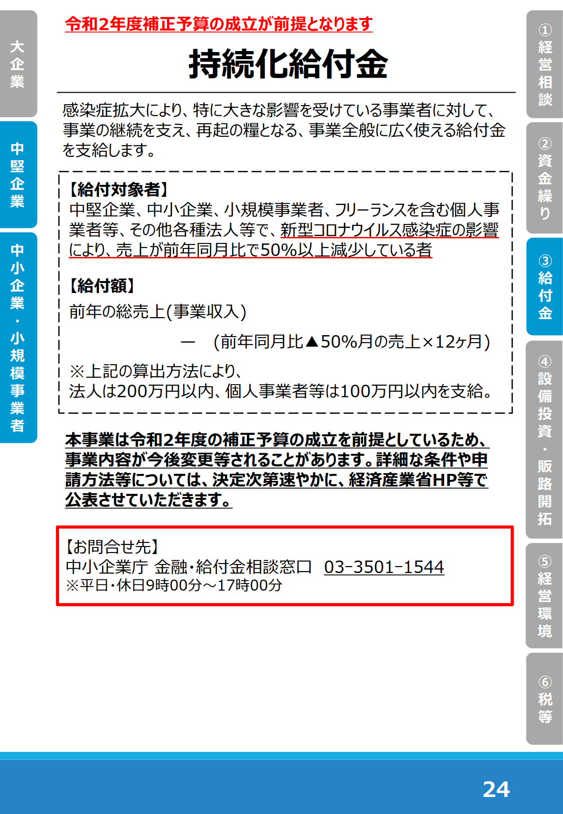 ■新型コロナウイルス感染症により影響を受ける中小・小規模事業者等を対象に資金繰り支援及び持続化給付金に関する相談を受け付けます(中小企業庁HP)