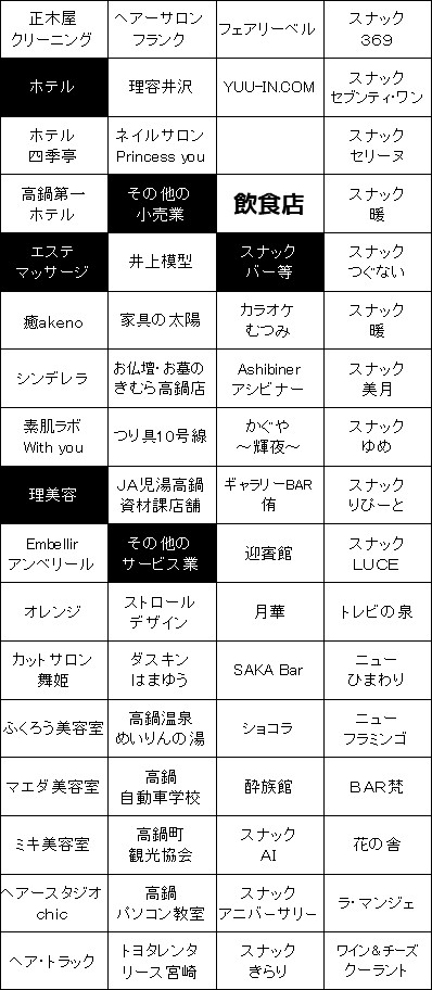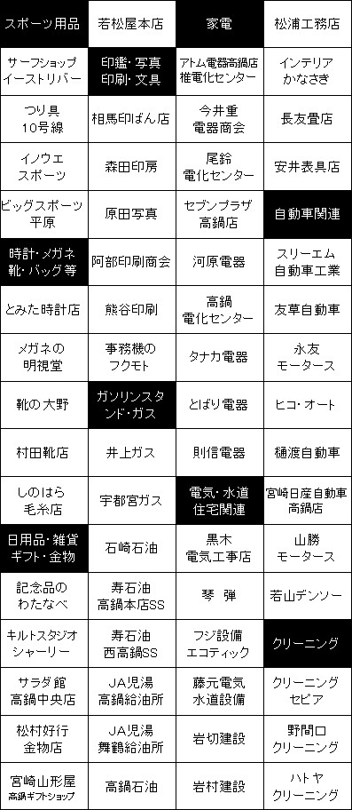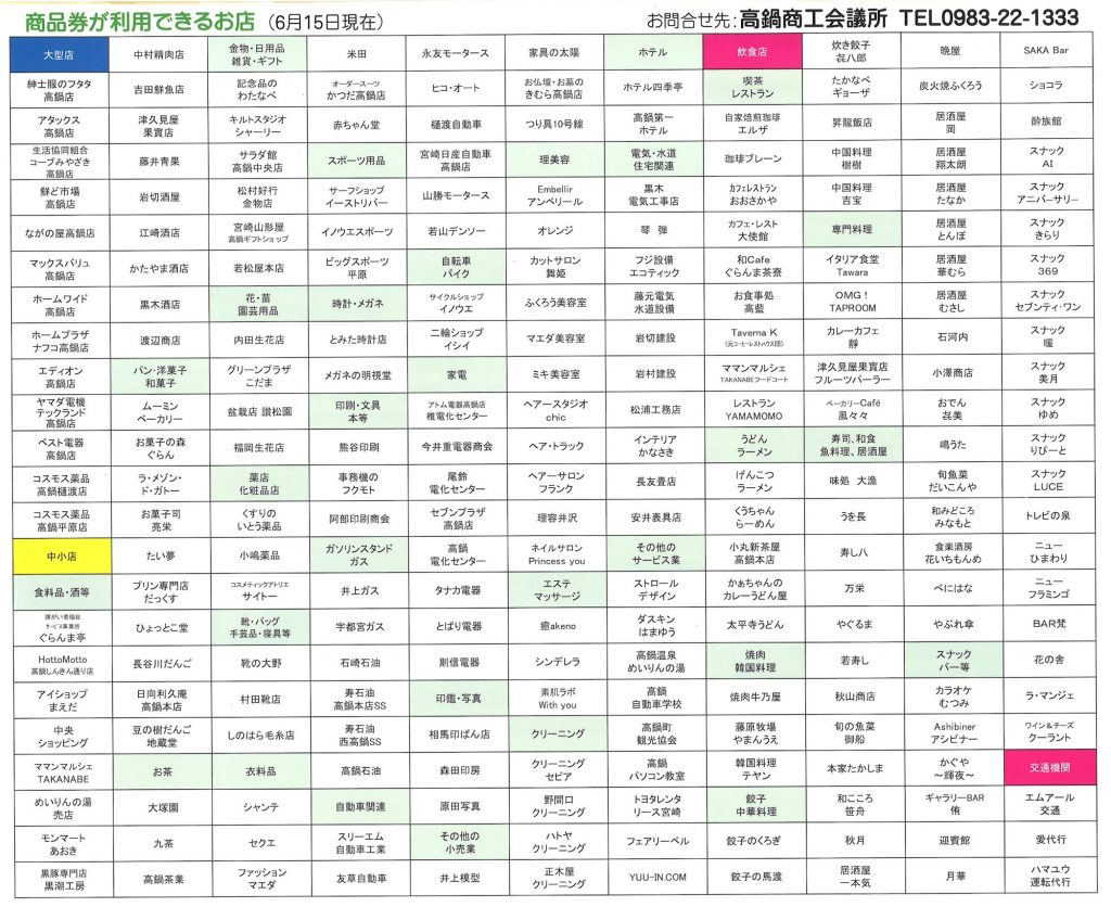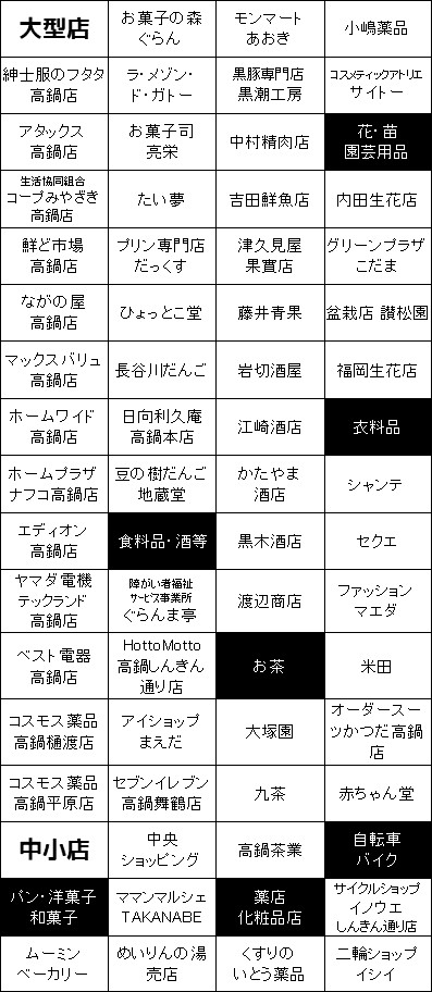 「大型店」「中小店」「飲食店」「交通機関」と4つにジャンル分けしていて、それぞれ使える商品券が違いますのでご注意ください。