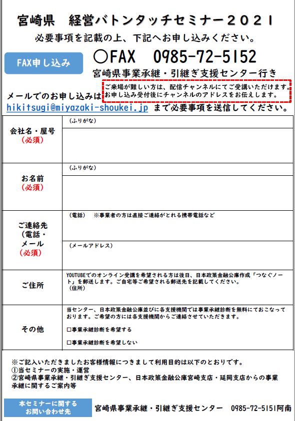 ・宮崎県事業承継・引継ぎ支援センターの事業概要説明