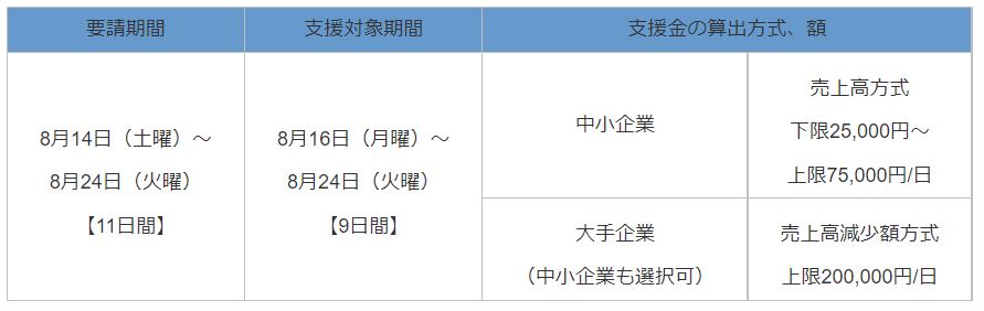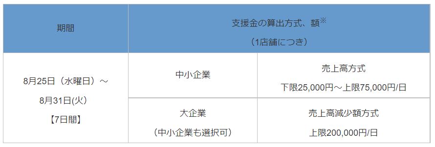 ※8月14日(土曜)または15日(日曜)から要請に協力した場合は、その分が加算されます。