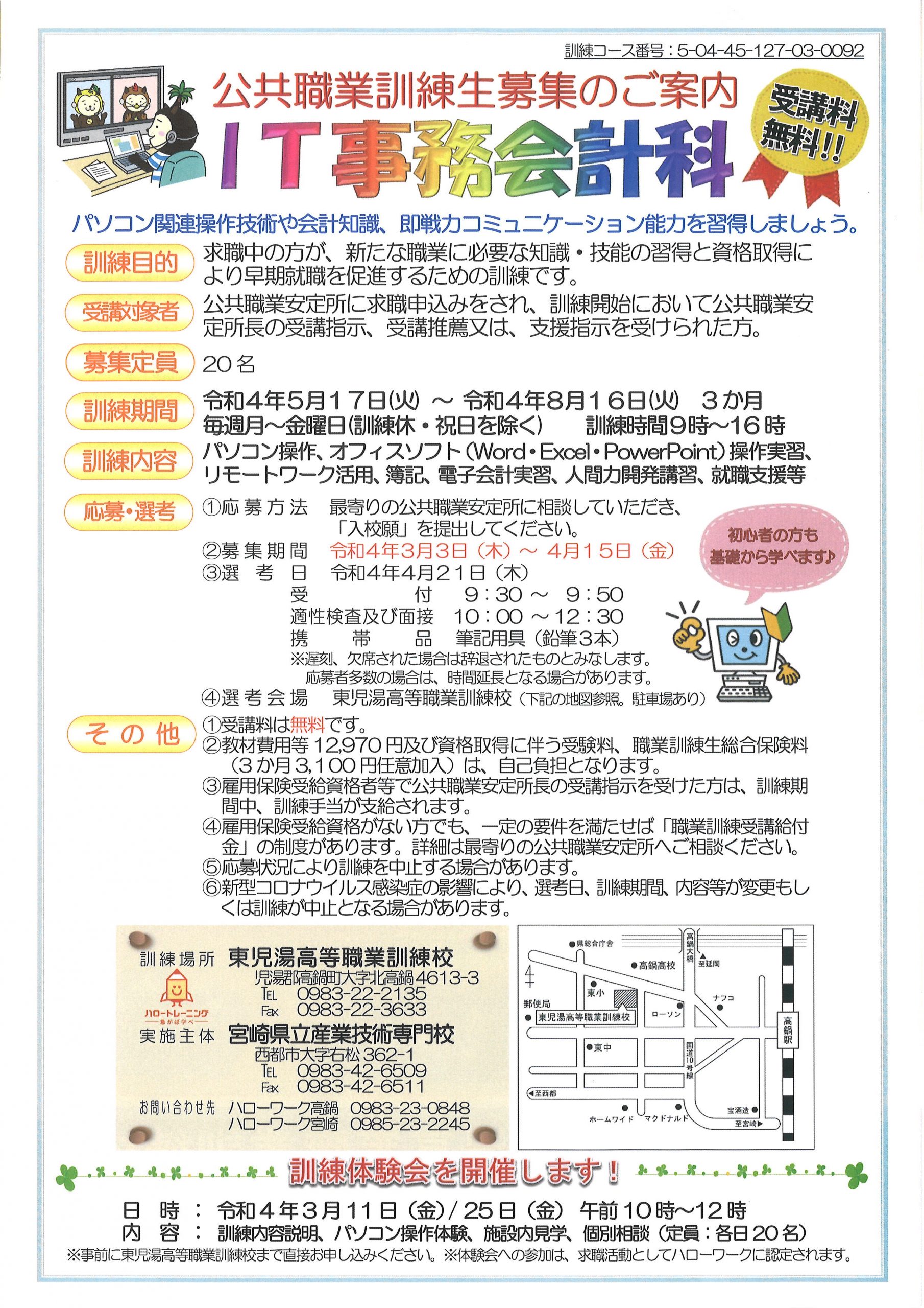 東児湯高等職業訓練校さんから生徒募集のご案内です。