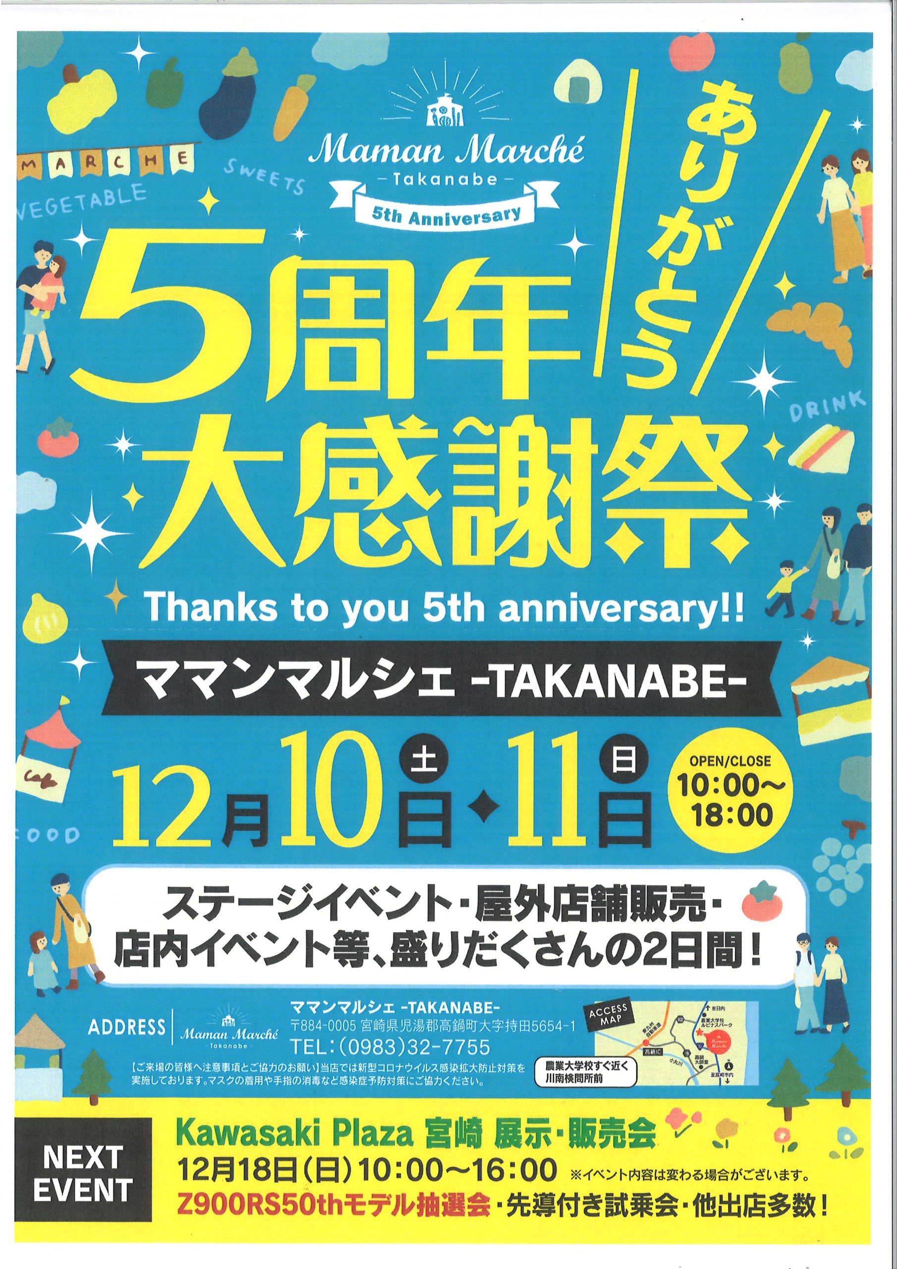 国道10号線にある「ママンマルシェ-TAKANABE-」さんから5周年大感謝祭のご案内です