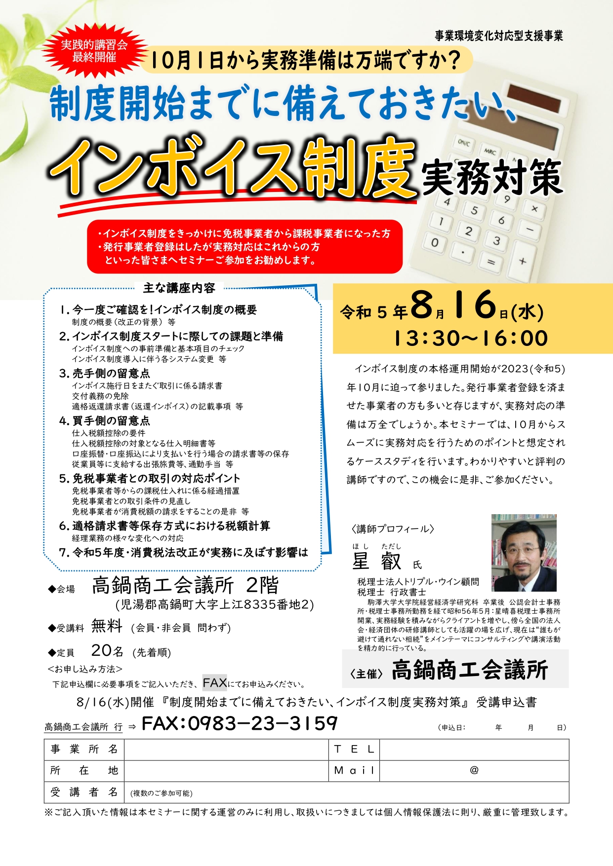 【8/16開催】制度開始までに備えておきたい 「インボイス制度実務対策」セミナー