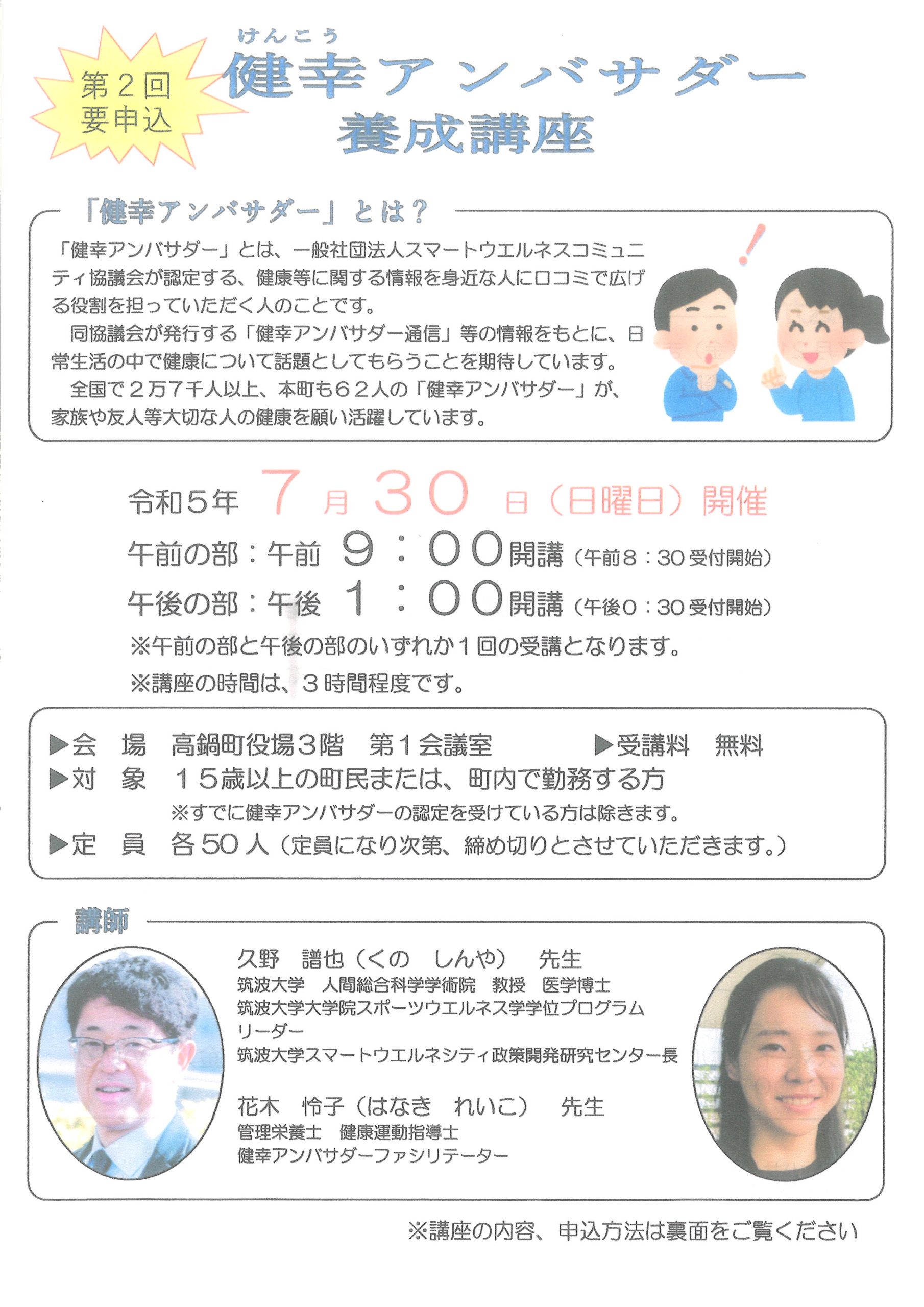 健幸アンバサダーについて詳しくは、一般社団法人スマートウェルネスコミュニティのWebサイト(外部リンク)をご覧ください。