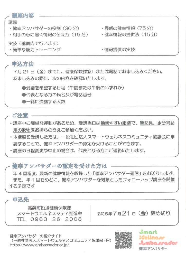 高鍋町役場 健康保険課 スマートウエルネスシティ推進室