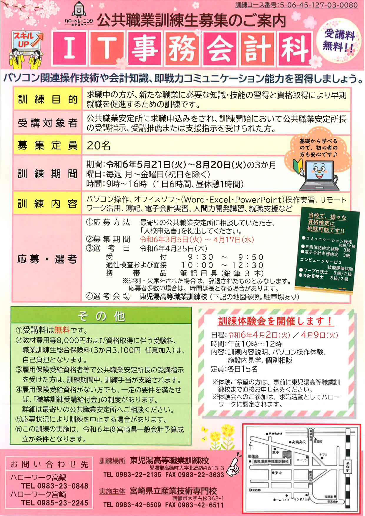 パソコン操作を勉強したい方、会計知識を身に着けたい方は是非ご参加下さい。