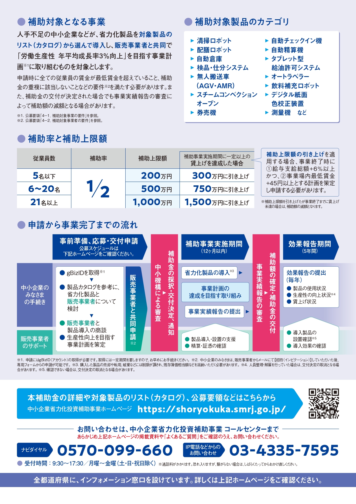 また、ご不明な点がございましたら、中小企業省力化投資補助事業コールセンターまでお問い合わせください。