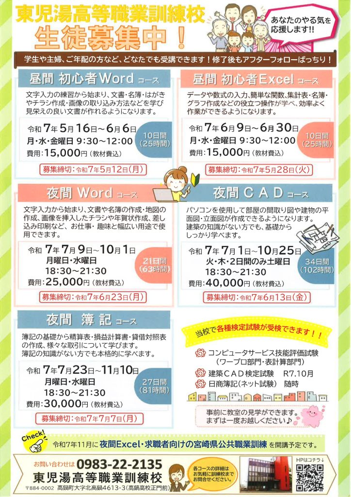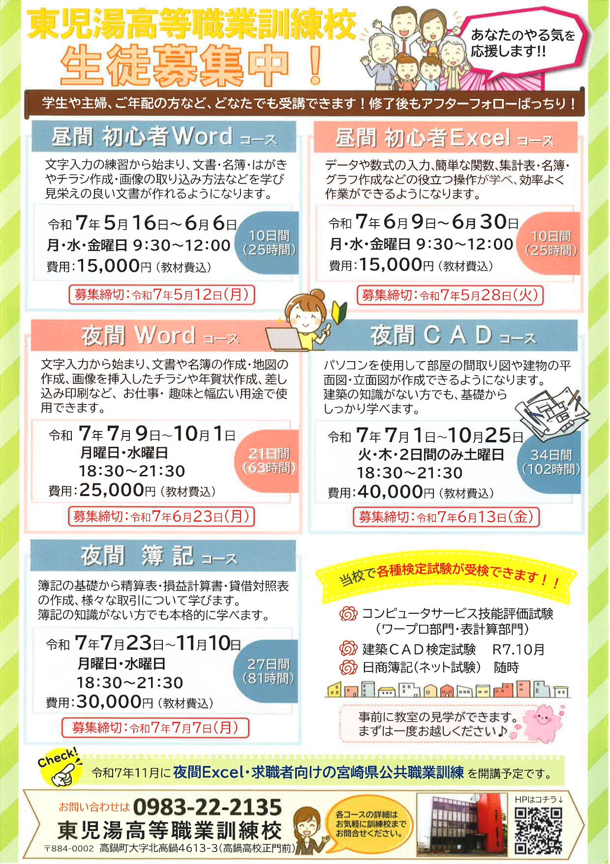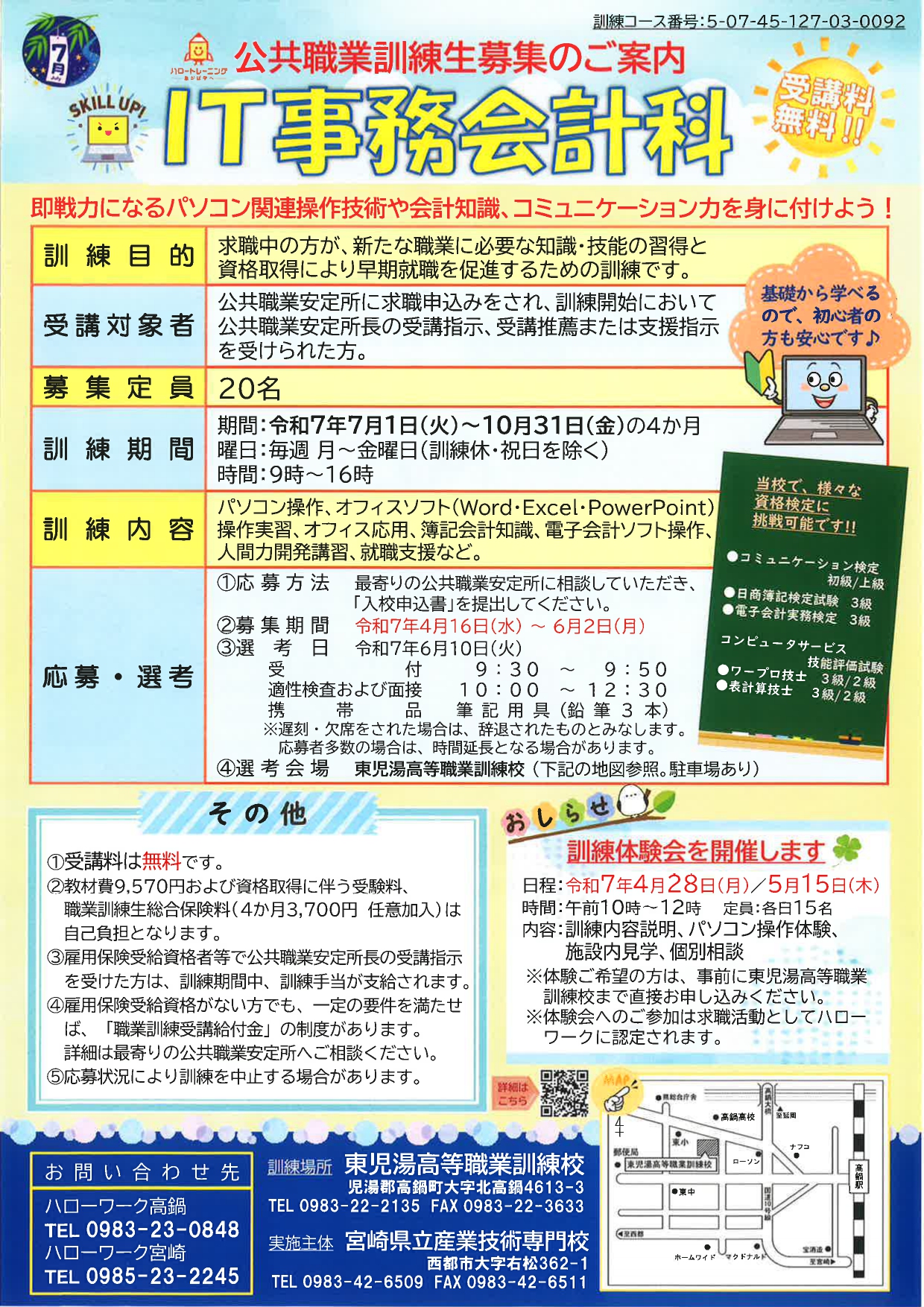 東児湯高等職業訓練校で『IT事務会計科』が開校されます。